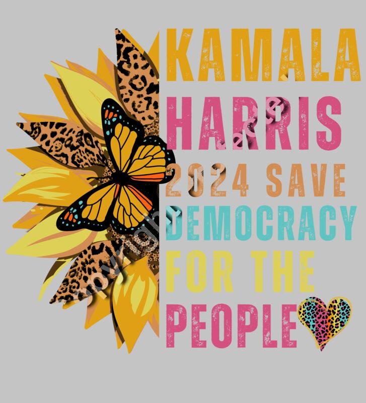 Kamala Harris 2024 campaign butterfly sunflower graphic save democracy for the people