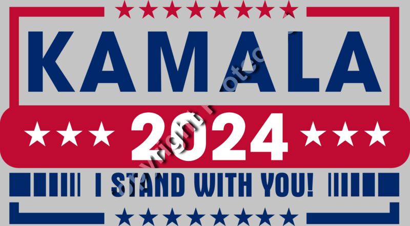 Kamala Harris 2024 campaign graphic with patriotic colors and slogan supporting her candidacy