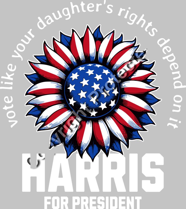 Kamala Harris 2024 campaign sunflower design with patriotic colors and voting message