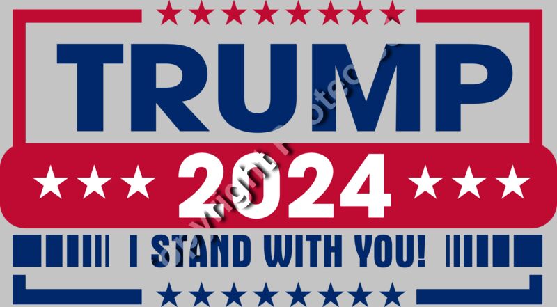 Trump 2024 campaign graphic featuring bold text stars and patriotic colors