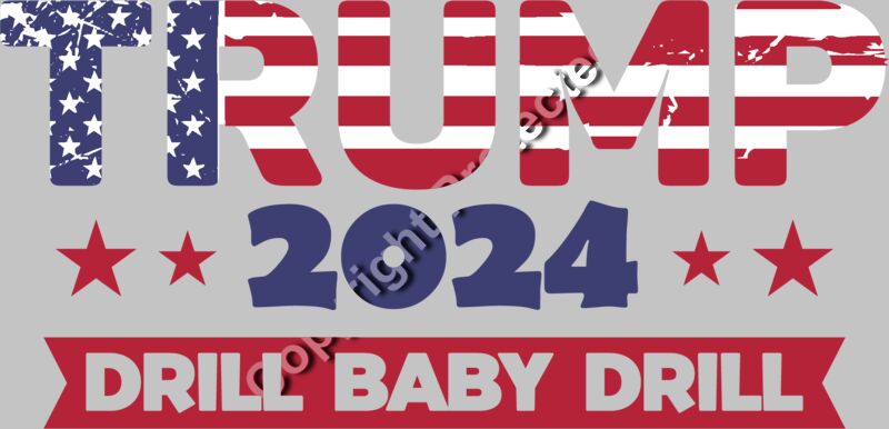 Trump 2024 campaign slogan with stars and patriotic colors Drill Baby Drill text