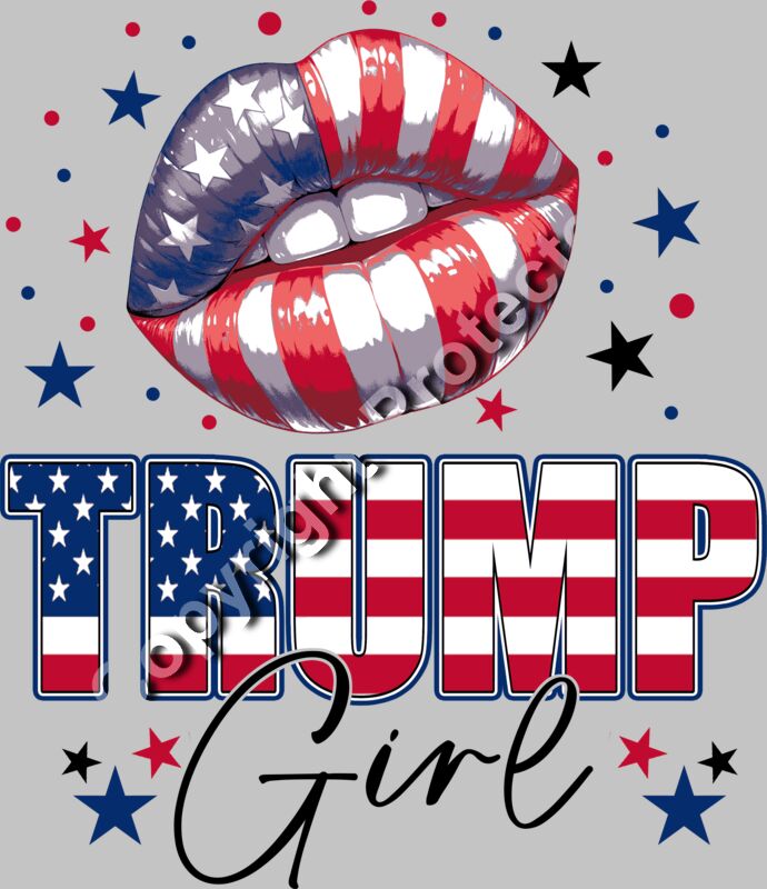 Trump 2024 patriotic design with red white and blue lips and bold text