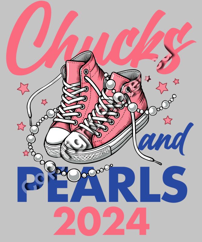 pink sneakers pearls Kamala Harris 2024 campaign style graphic